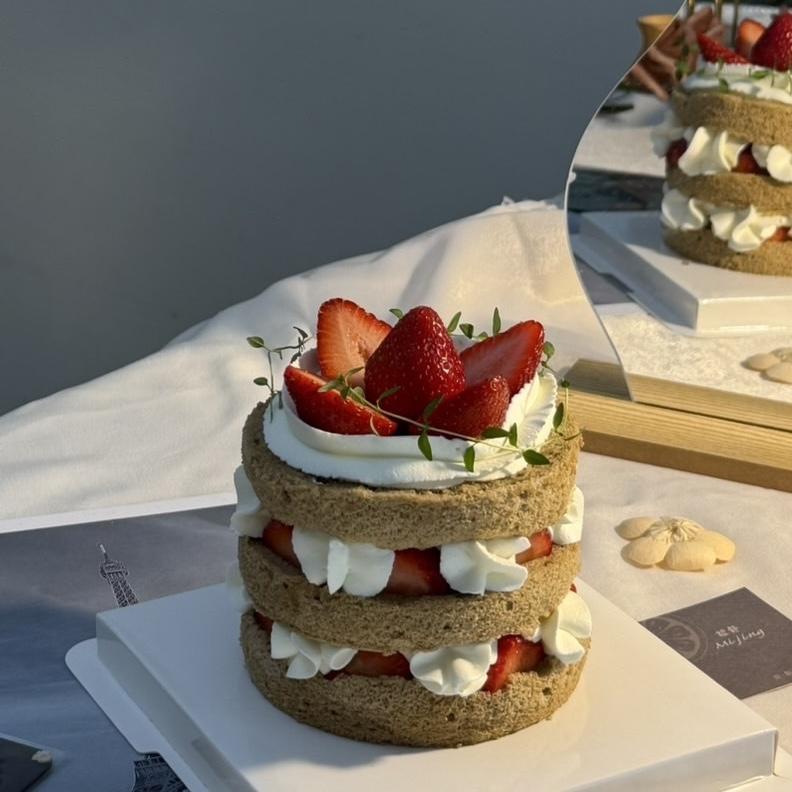 層層夾入新鮮草莓與滑順鮮奶油,莓果酸甜與茶韻交織。
