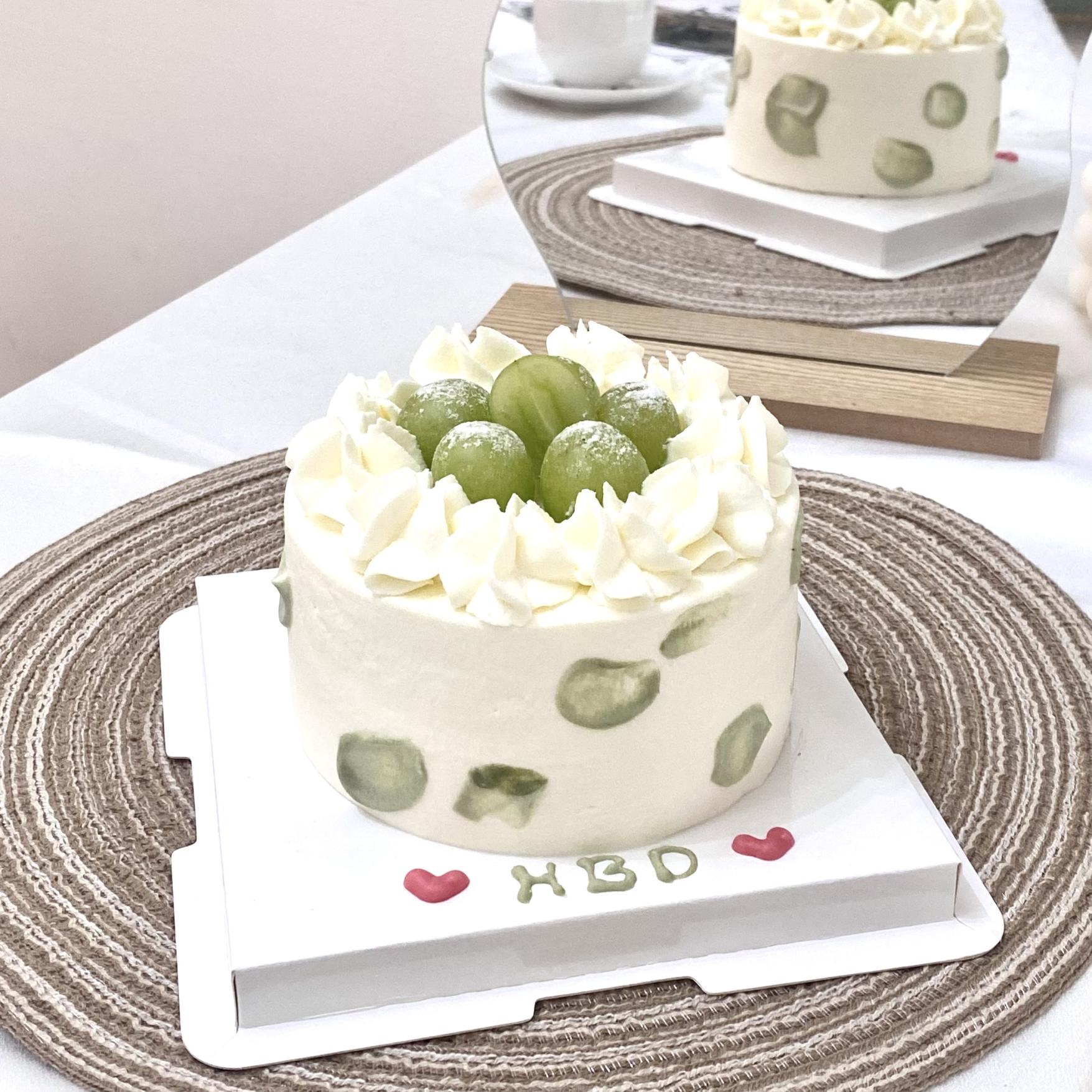 周圍以一抹一抹的淺綠色鮮奶油點綴,清新又優雅,相信它在各種節日中都會是一個完美的禮物。